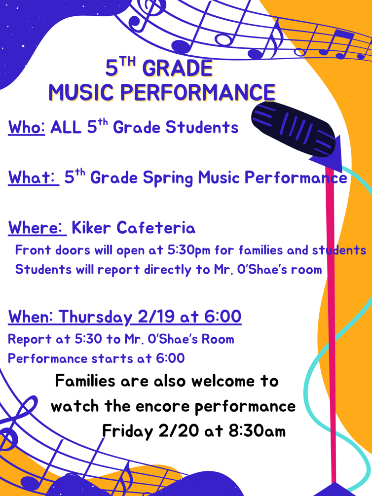 We hope you'll come to Kiker to hear us sing and have fun at our next concert!